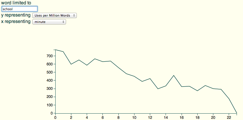 That’s pretty interesting, actually: pretty much every minute, the plots seem to shift away from school.