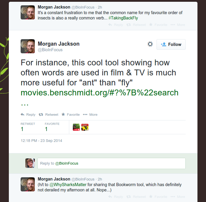 But topics also have a lot to offer token-based searching. Watching links into the Bookworm browser, I recently stumbled on this exchange: